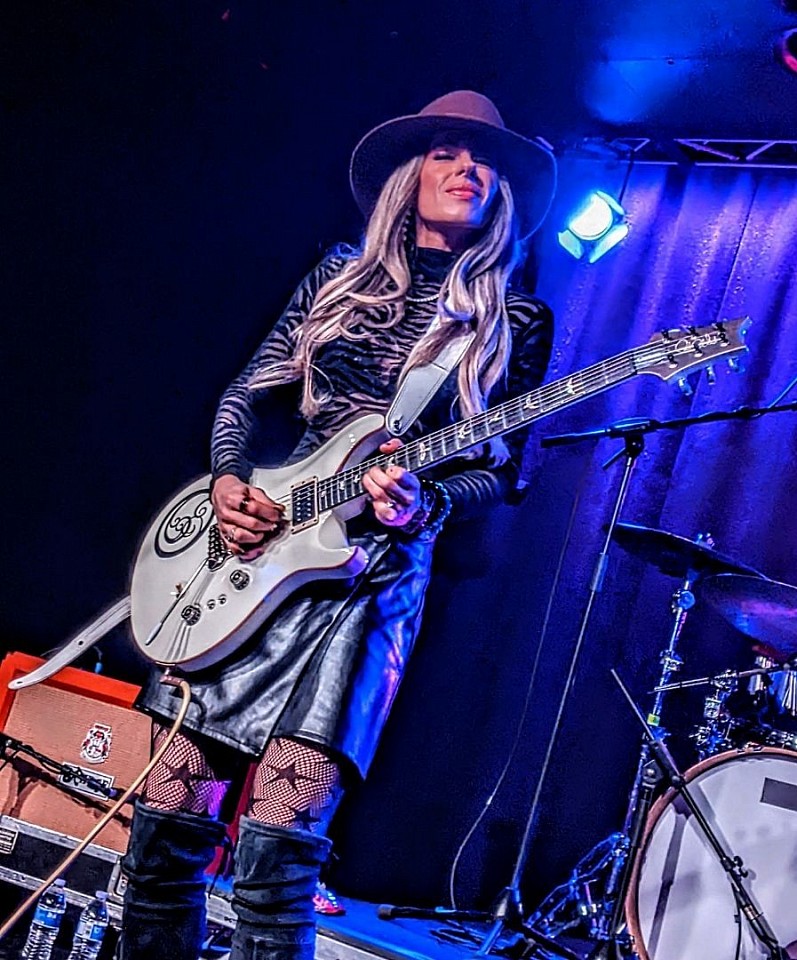 The set opens with First Time Blues, and from the very first note it’s clear that this is a guitarist operating at the highest level. Her touch is immediate and assured, drawing the audience in with delicate hammer-ons that build perfectly into the heavier groove of Sinner, where the interplay between wah-wah pedal and whammy bar creates a thrilling push and pull.